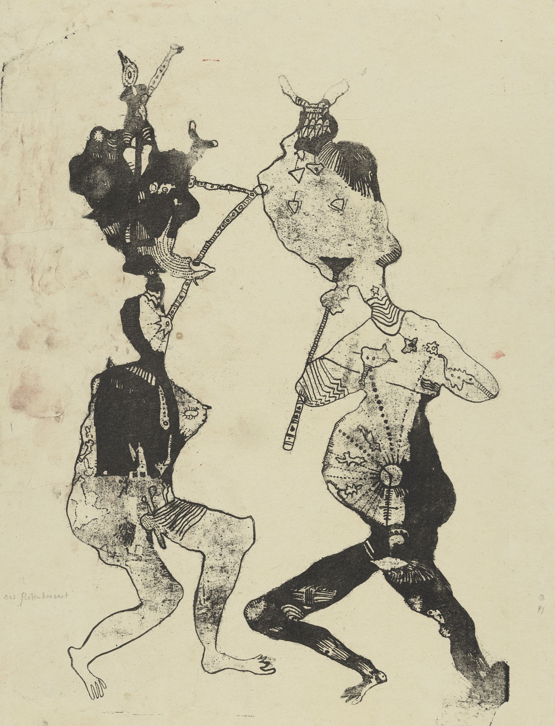 Gerhard Altenbourg, Das Flötenkonzert, 1949, Lithografie mit Lithotusche auf Papier in Schwarz, Stiftung Gerhard Altenbourg